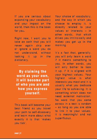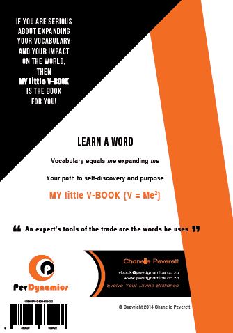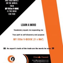 Invest in the ‘My little V-BOOK’ for only R110 because “the level of your vocabulary will determine the level of your vocation”.